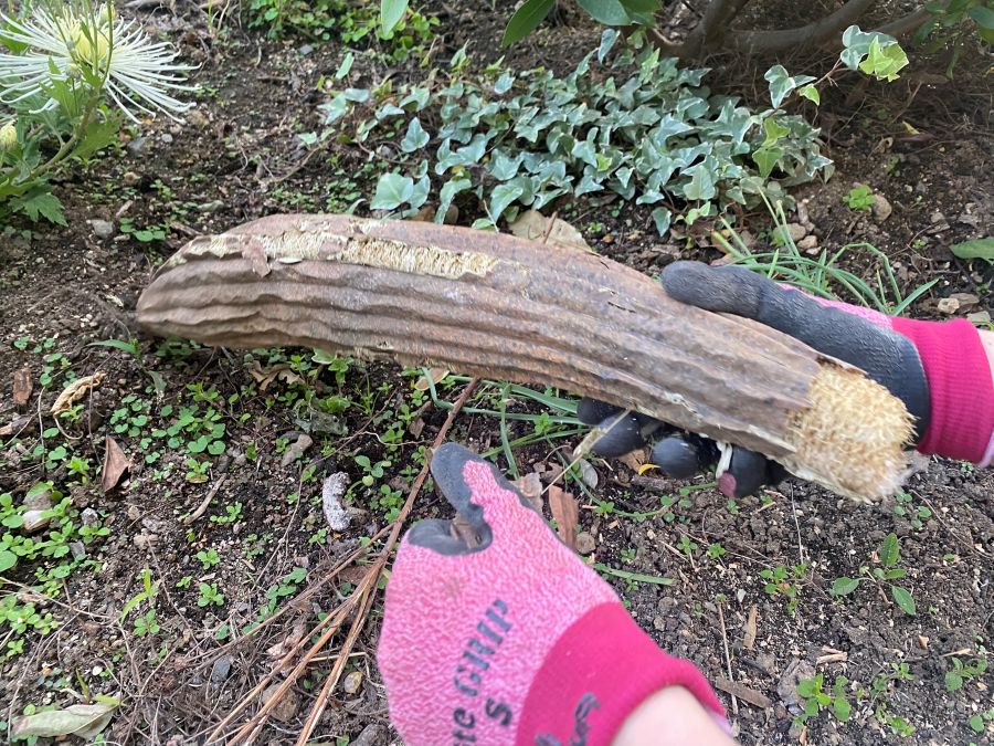 まだ青々としていた時期は重さもありましたが、中の水分も抜けてすっかりカラカラになっているようです。