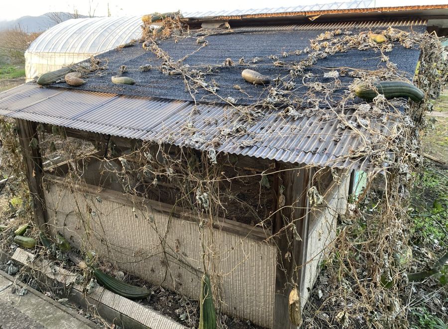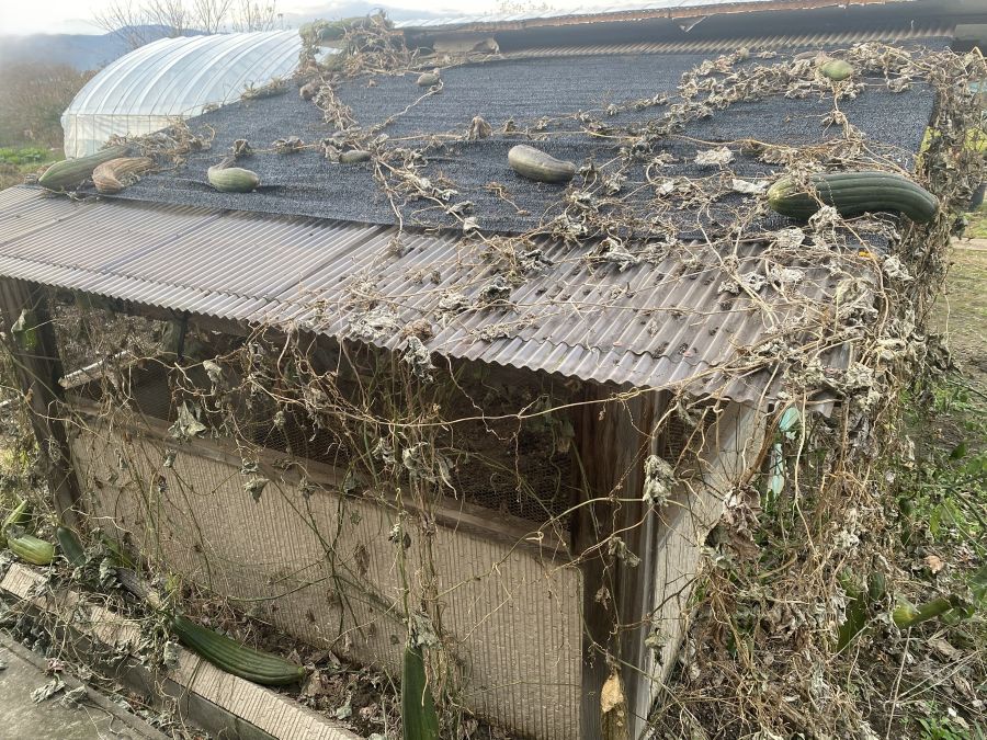 この後、12月に入ってから鶏小屋周りのへちまは全て撤去しました。