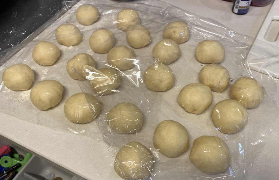 出来上がった生地を、お団子状に丸めていきます。