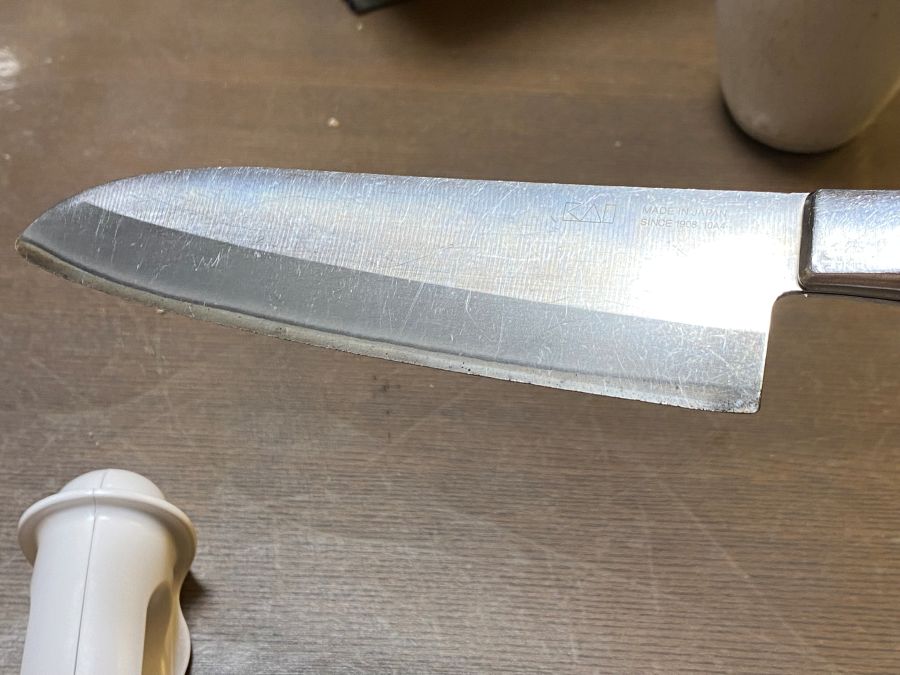 その都度シャープナーで研いではいるものの、やはり使い続けるうちに当然のように切れ味は落ちてきます。