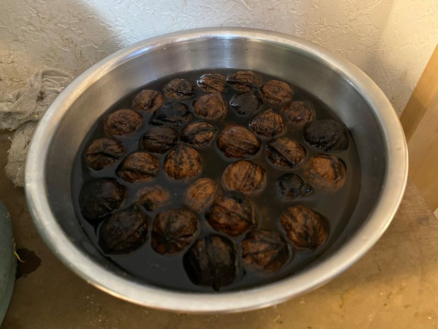 さっそく拾ってきたクルミを水に浸します。