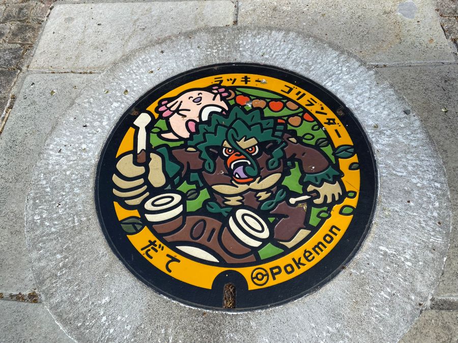 登山口にあるマンホールは、「ポケモン」のデザインです。