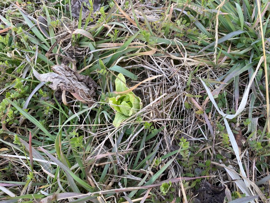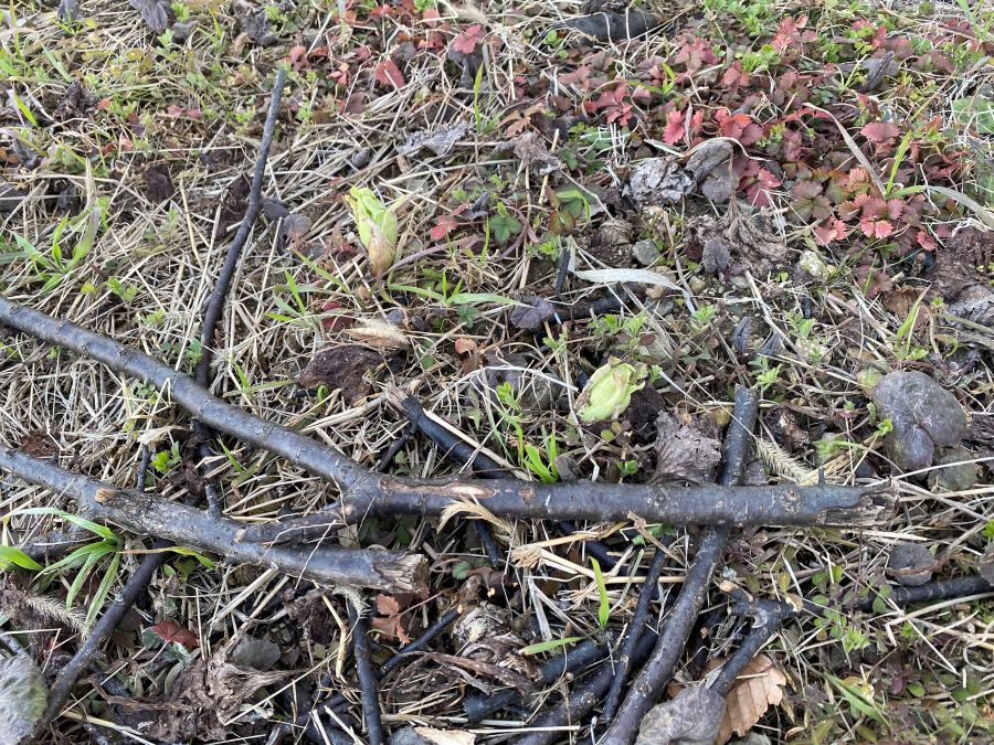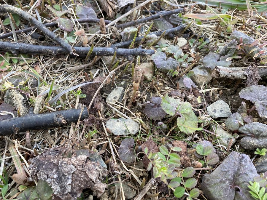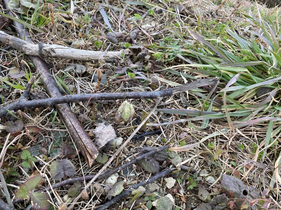 新しいフキノトウも顔を出していましたが、その隣には一週間前にはなかったものが!