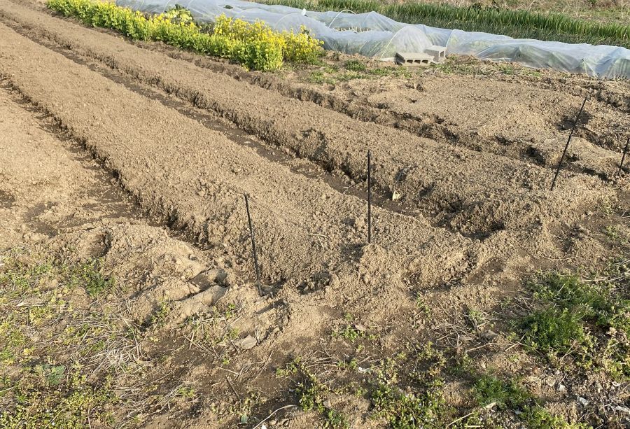 この数日前に、2列ほどジャガイモの種イモを植えました。