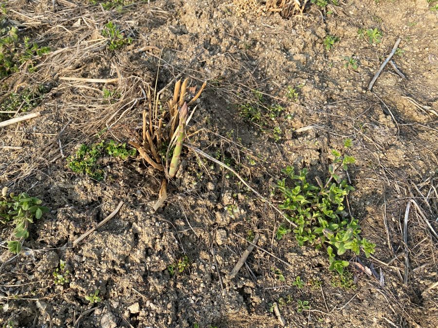 別の場所にも、小さなアスパラガスが顔を出していました。