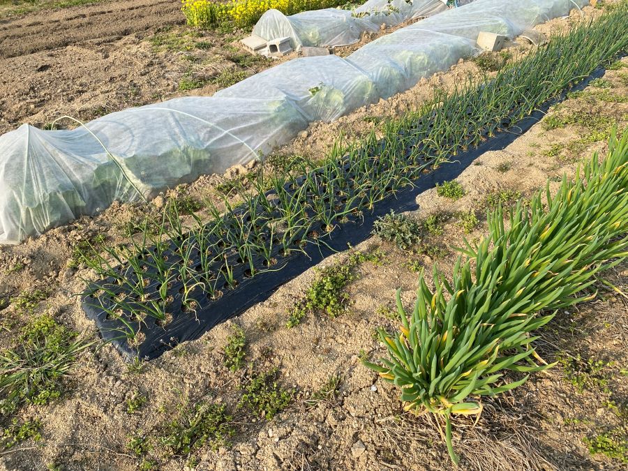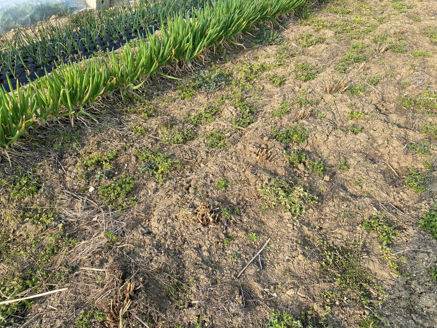 奥側はネギですが、手前に植えてあるのは一見してわかりません。