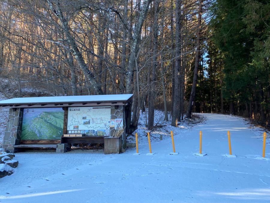 駐車場にはすでに数台の車が駐車してあり、雪に残る足跡からは何人かすでにスタートしているようでした。