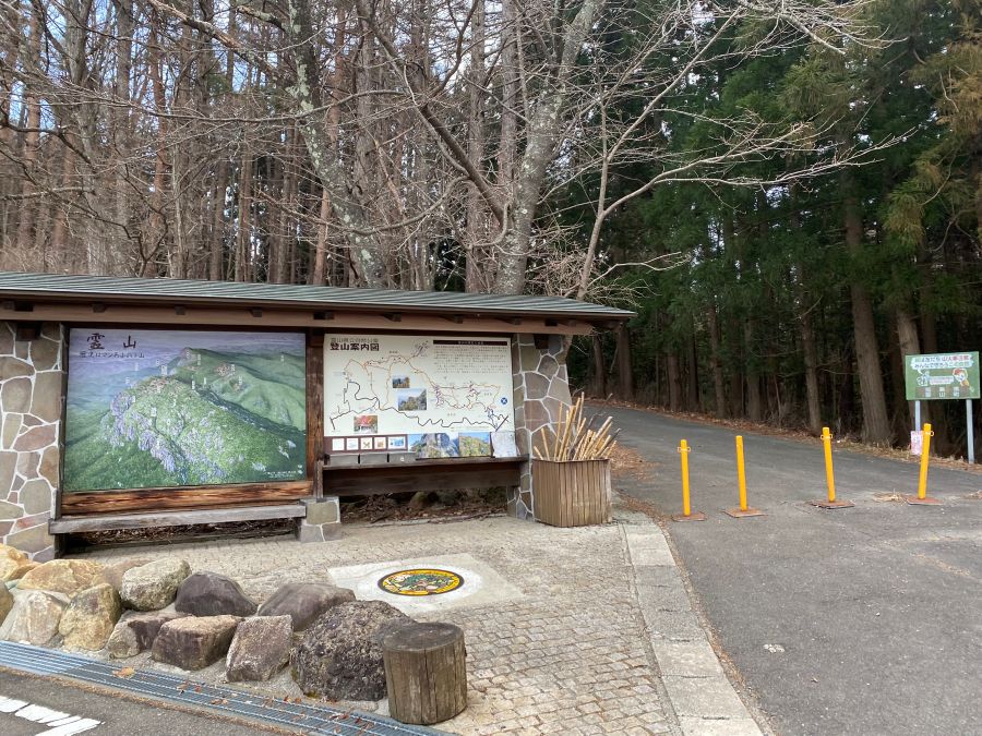 2026年2月23日、午前8過ぎに霊山登山口の駐車場へ到着。