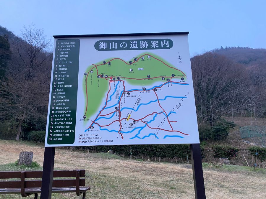 「御山の遺跡案内」と書かれた案内図には、この付近の遺跡等が記されています。