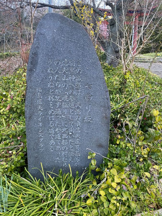 登り切ったところには、「七曲り坂」の石碑が立っています。