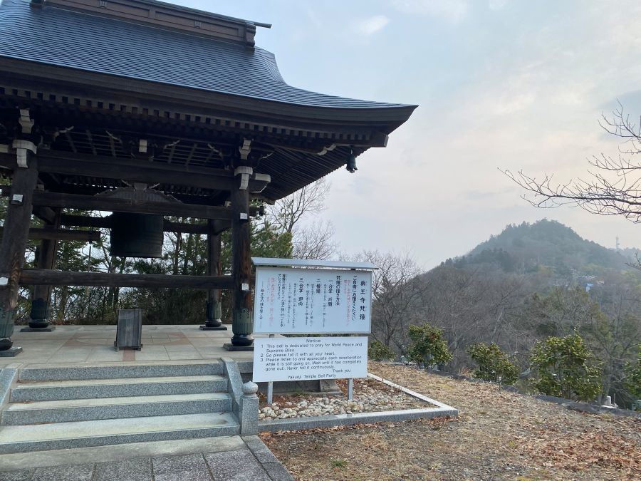 お墓の横を抜けて坂を上っていくと、「薬王寺の鐘」がありました。
