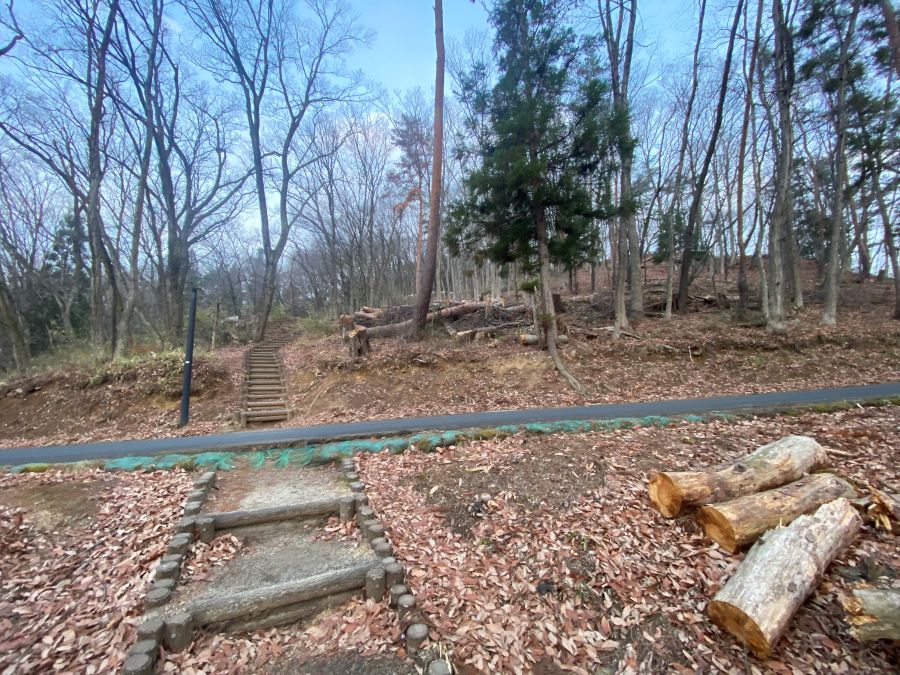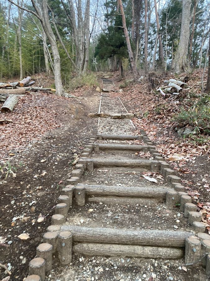 途中でアスファルト敷きの車道に出て、そこからは散歩用に整備された階段を進みます。