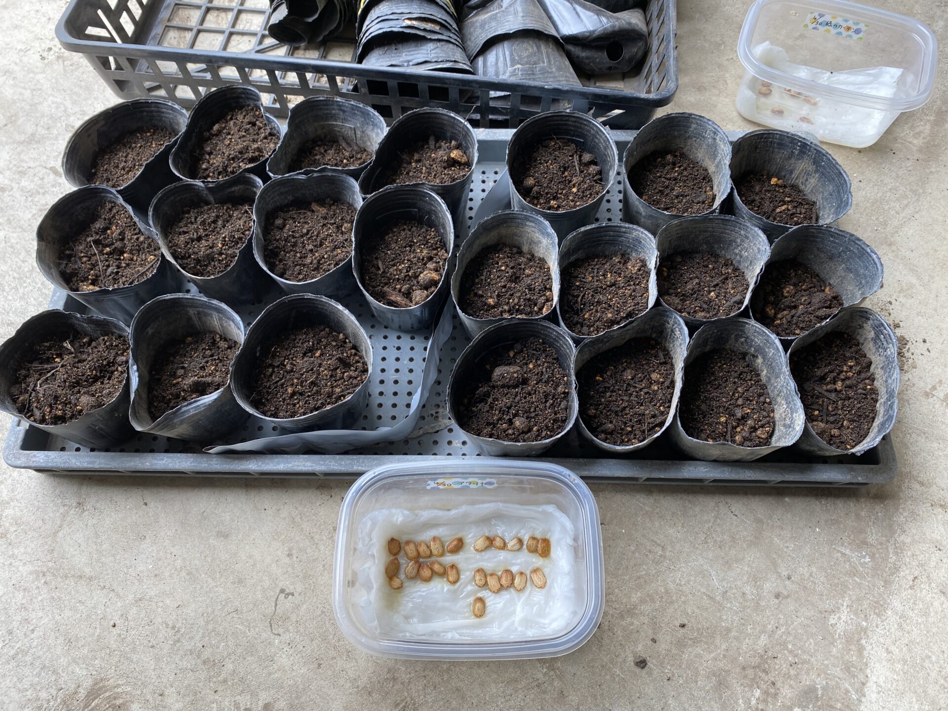 こちらも同じ要領で育苗ポットへ土をいれて種を蒔きました。