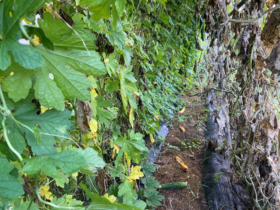 ちなみに、ゴーヤとキュウリの棚の中がこちら。