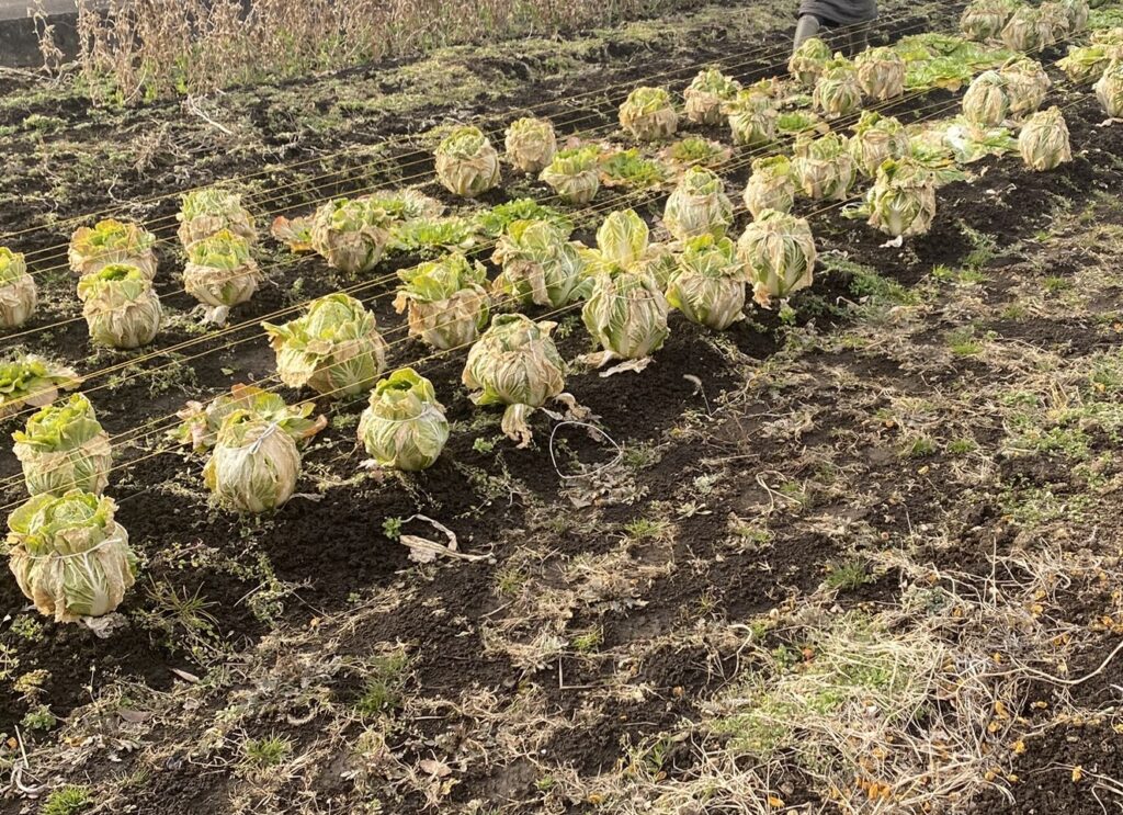 2026年の今シーズンは特にその被害が顕著で、例年になくたくさんのヒヨドリが畑にやってきて、せっかく育てた白菜もついばまれています。