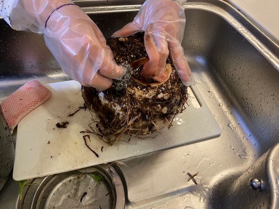 表面を洗い終えたら、続いては適度なサイズに切っていきます。