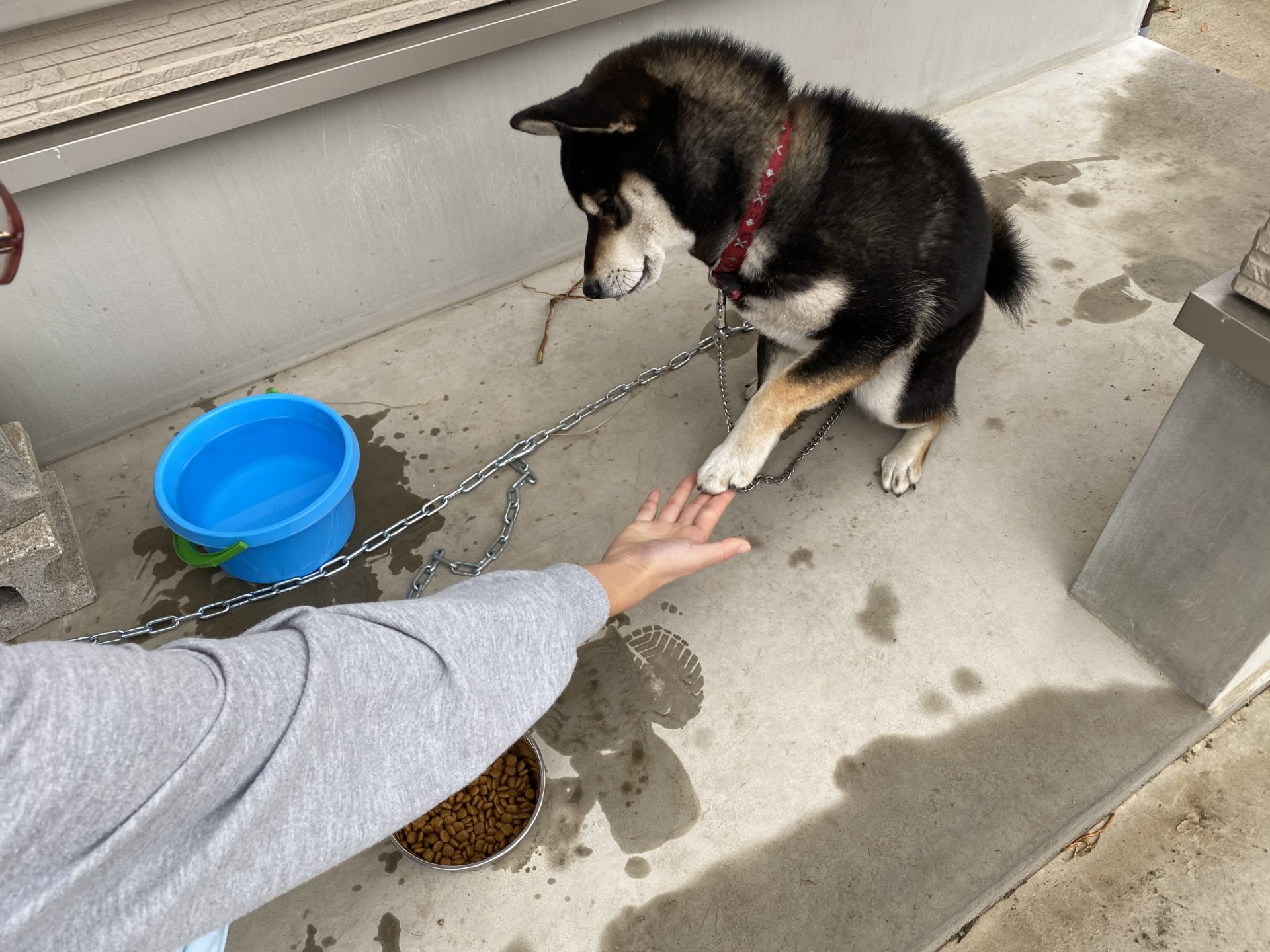 ご飯の前のお約束、「待て」や「お座り」、「お手」もしっかりと出来るようになってきました。