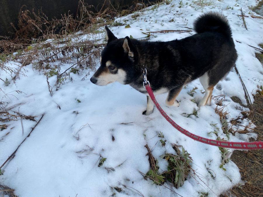 雪が大好きなゴンちゃんは、わざわざ雪の上を楽しんで歩きます。