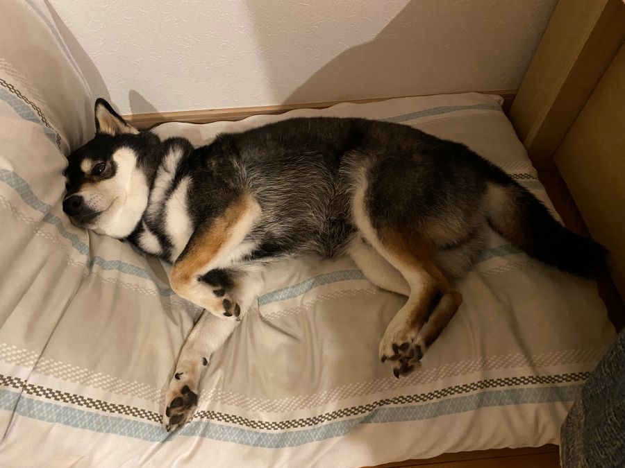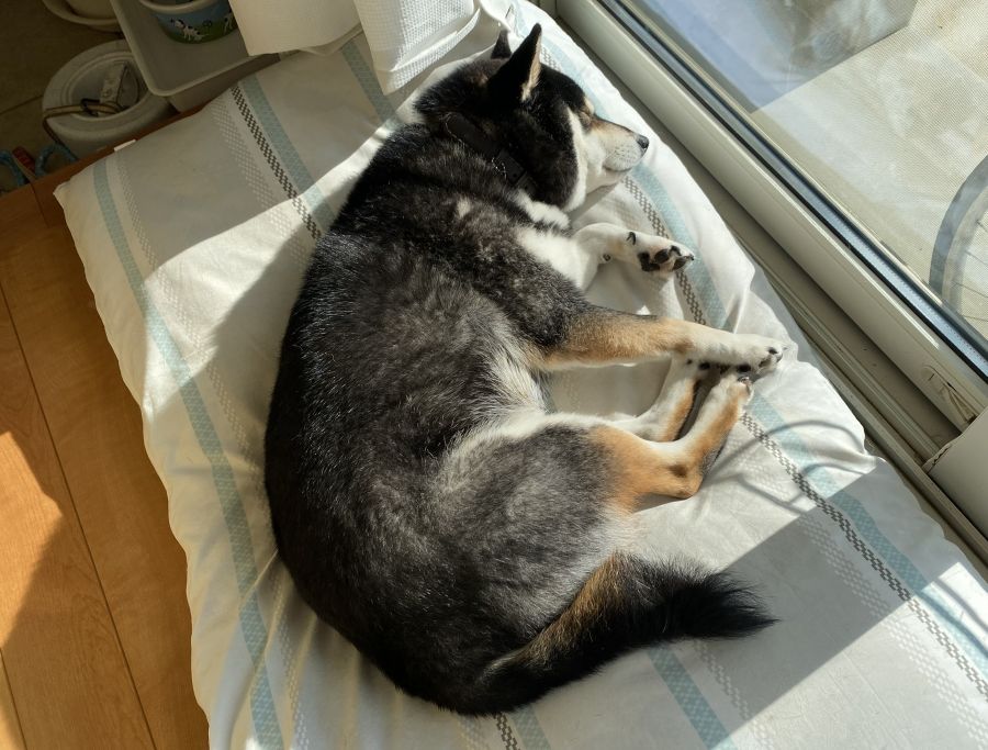 外は晴れ、ぽかぽか陽気でゴンちゃんも自分専用のマットの上でお昼寝中。