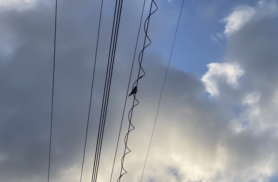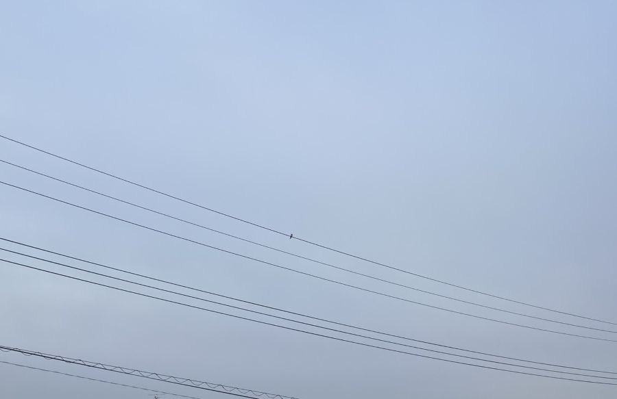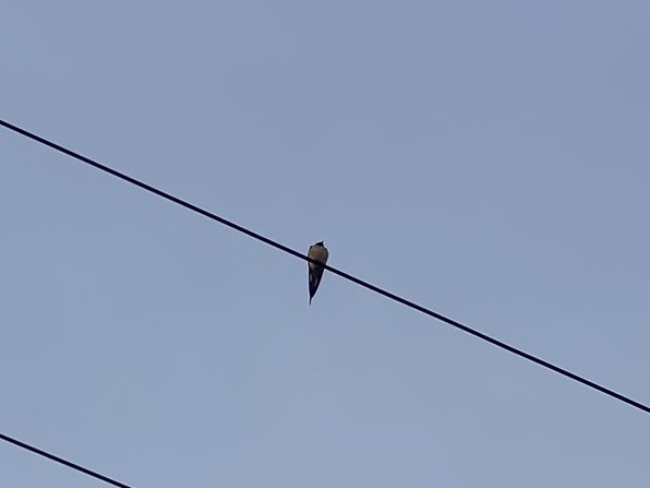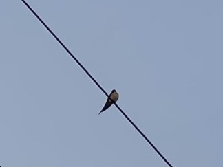 午前6時過ぎ、玄関を開けて外に出てみると、しばらく見ていなかった懐かしいシルエットの鳥が庭先の電線の上にとまっているのを確認しました。