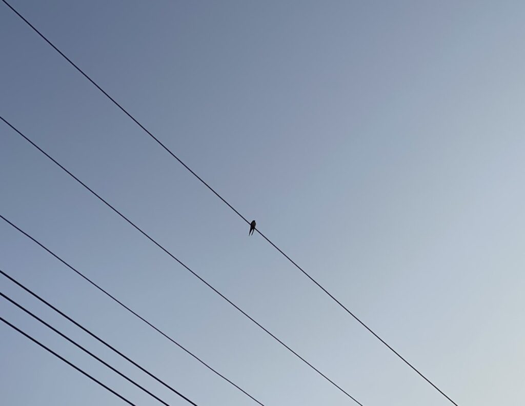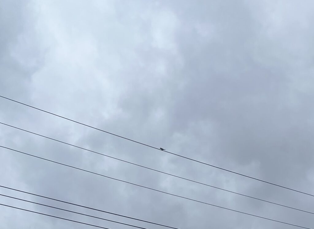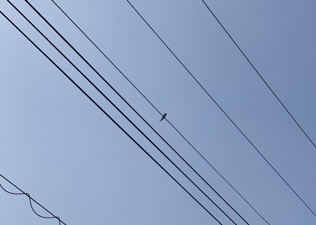 外を見てみると、電線の上に1羽のツバメ。
