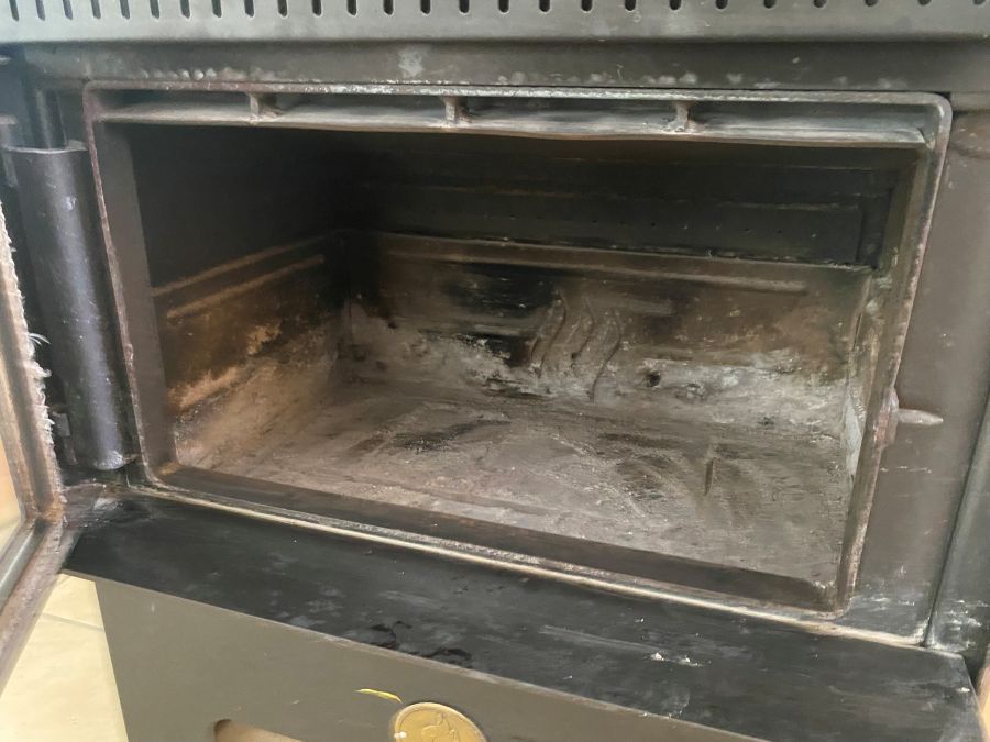 フルメンテナンス作業では、中の灰もすべて取り除いて、敷いてある耐火レンガも外してきれいにしてもらいますが、少しでも灰が邪魔にならないように灰は片付けておきました。