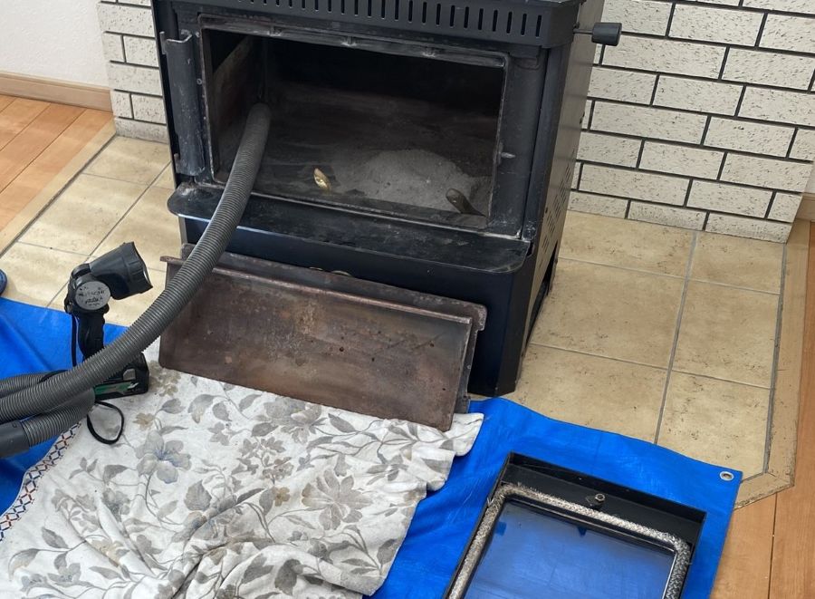 煙突掃除が終わると、今度は薪ストーブ本体のメンテナンス作業です。