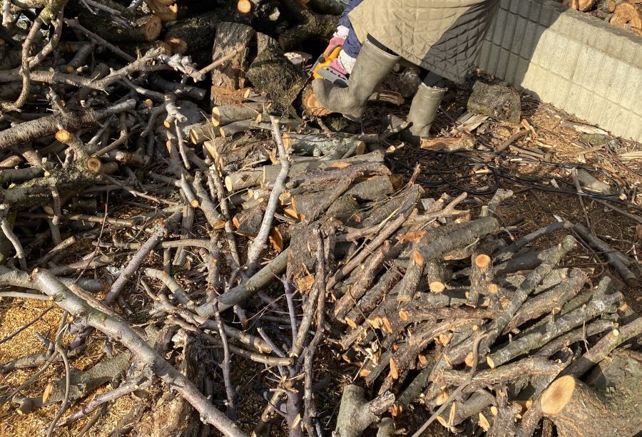 毎年、剪定した枝や古くなって植え替えるために伐採した果樹をいただいています。