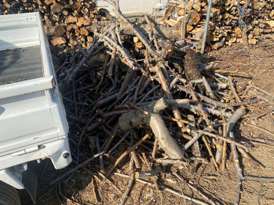 2026年2月15日、天気も晴れて絶好の屋外作業日和となったこの日、近所の果樹畑にお邪魔して、剪定した果樹をいただいてきました。