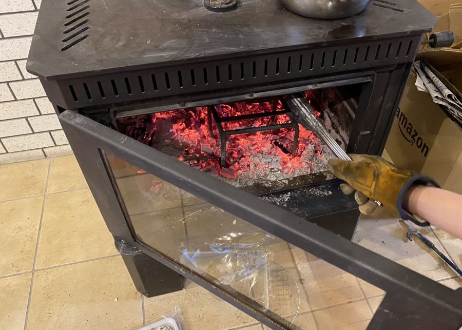 薪ストーブ内は十分熱くなっているので、準備はOKです。