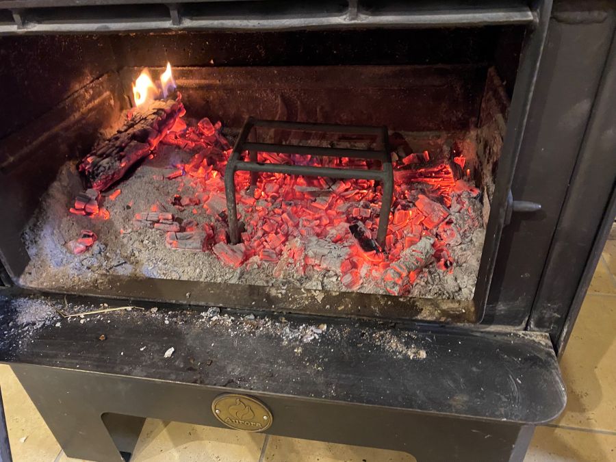 薪ストーブの中は十分に熱くなっており、準備は万端です。